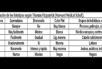 Si quieres saber cómo exponerte al sol de forma segura y responsable hazlo según tu fototipo, según el cuadro de arriba del Dr. Fitzpatrick.