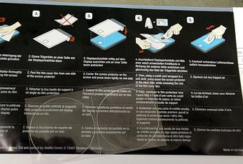 Los protectores llegan por correo ordinario en un sobre junto con la factura de compra y no incluye ningún accesorio para su colocación, tan solo un sobre de plástico con los vinilos en su interior y en el reverso las instrucciones para colocarlos en varios idiomas.