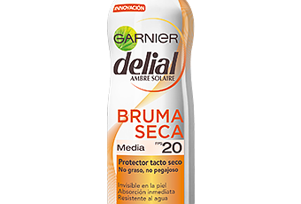 Protector solar en formato spray de secado inmediato de Garnier. "Garnier Delial sigue innovando de forma pionera para afrontar un reto: ofrecer nuestra primera protección solar avanzada con una sensación de piel desnuda. ¡Ahora ya puedes proteger tu piel del sol sin tener una sensación pegajosa! Gracias a la textura ultra-ligera, fresca y suave de la nueva bruma seca, disfrutarás de una nueva sensación bajo el sol: ¡adiós a la arena pegada en tu piel!". Contiene 200 mL con una caducidad recomendada de 12 meses, en distintos formatos de SPF: 20, 30 y 50.