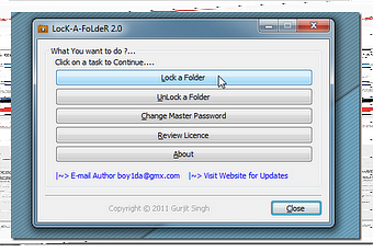 Si tienen carpetas con datos privados a la que no quieren que nadie accesa necesitan un programa como Lock a Folder, que nos permite proteger una carpeta con contraseña para que nadie pueda abrirla. Su uso es muy simple, sólo tienen que elegir la opción Lock a folder y elegir la carpeta que quieren proteger, ingresen al contraseña maestra, y luego ya estará protegida. Cuando quieran acceder abren el programa y eligen la opción adecuada.