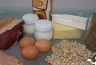 Entre el 12 y el 13 por 100 de las Kcal diarias totales deben ser aportadas por proteínas. Cuando el aporte de proteínas es insuficiente se produce una destrucción de los tejidos, por el contrario, si el aporte es excesivo se utilizarán para producir energía, este último caso no es para nada aconsejable ya que la función de las proteínas no es suministrar energía, un gramo de proteínas proporciona 4 Kcal.. Los alimentos que contienen proteínas son:Leche y productos lácteos, contienen todos los aminoácidos esenciales y en la proporción adecuada. El queso y el yogur poseen todas las proteínas de la leche.Carne, pescado y huevos, tienen gran cantidad de proteínas de elevado valor biológico.Legumbres, tienen muchas proteínas pero de menor valor biológico que las proteínas de origen animal.Cereales, con elevada proporción de proteínas pero incompletas.Frutos secos, son buena fuente de proteínas. Las nueces tienen proteinas de buena calidad. Para tener una alimentación equilibrada debemos consumir proteínas en la proporción y cantidad adecuada, esto nos lo proporciona una alimentación variada. Se calcula adecuado un consumo de 0,8g de proteínas por Kg de peso corporal. Esta cantidad de proteínas puede verse modificada en ciertas etapas de la vida, etapas en las que el aporte proteínico ha de ser mayor como durante el embarazo, lactancia, deportistas, ancianos, posoperatorios, quemaduras graves, etc.