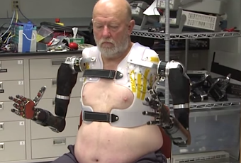 Enviado por Fernanda RamirezHace 40 años, el estadounidense Les Baugh perdió ambos brazos durante un accidente eléctrico. Este verano, ha hecho historia al convertirse en el primer amputado en controlar simultáneamente dos prótesis modulares de las extremidades (MPL, por sus sigas en inglés), en al Laboratorio de Físicas Aplicadas de la Universidad Johns Hopkins. Su logro podría representar un gran avance en el mundo de los prostéticos.