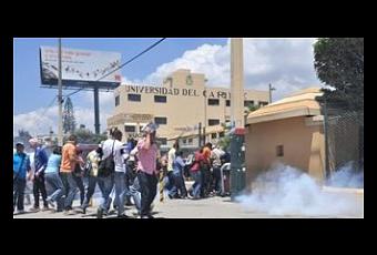 Santo Domingo. Estudiantes de la Universidad del Caribe -UNICARIBE- fueron enfrentados hoy a bombazos por agentes policiales, cuando protestaban en la Avenida 30 de Mayo, en rechazo a una resolución del Cabildo del Distrito Nacional que les prohibe construir un puente peatonal sobre la citada vía.