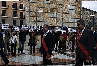 Me entero por Qaesar (El Ventano) de que la asociación Movimiento hacia un Estado Laico (MHUEL) ha convocado un acto de protesta por la participación de la Corporación Municipal de Zaragoza en la procesión de la festividad del san Valero, patrón confesional de la ciudad. Sucederá mañana sábado y estará encabezada por el alcalde socialista, Juan Alberto Belloch, en comitiva oficial desde la Casa Consistorial hasta la Catedral católica de La Seo, en donde asistirá a una Misa Pontifical. Se trata del mismo alcalde que defiende que un crucifijo del siglo XVII presida los plenos del Ayuntamiento. MHUEL manifiesta su desacuerdo y oposición a la asistencia de representantes institucionales a estos actos, y se concentrará de manera pacífica y en “completo silencio” al paso de la comitiva con pancartas individuales de contenido laico.