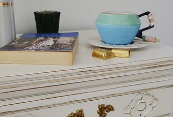 * Mesita provenzal blanco y verde, disponible en la Tienda Online.