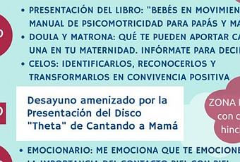 Aquí os dejo el cartel donde, como veis, habrá presentaciones de libros, charlas sobre embarazo, parto, postparto y crianza, talleres de interés, educación, sorteos y por supuesto: ¡Música!