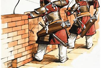 Las batallas de DBA no se dirimen solamente en brutales combates cuerpo a cuerpo entre enloquecidos contendientes o en salvajes cargas de caballería u otra clase de elementos montados.También hay descargas de arqueria que dejan como puerco-espines a las unidades enemigas que se ponen a tiro mientras enormes saetas,rocas,bolas de metal,fuego y demás cosas horribles son lanzadas al enemigo por maquinas de guerra desde la retaguardia.Los proyectiles tienen su hueco.Me gustaría hablar un poco sobre las armas de proyectiles en DBA