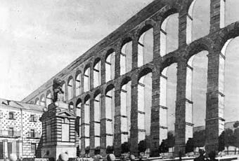 "El primer premio lo obtiene el proyecto presentado por Luis Laorga Gutiérrez y Francisco Javier Sáenz de Oiza, que proponen una plaza semirregular delante del Acueducto con una fuente en medio y rodeada de edificios con soportales castellanos. Las carreteras se abrirían antes de alcanzar la plaza, donde los coches podían diseminarse libremente. En realidad, y aunque no salió adelante, este proyecto será la primera piedra de la futura plaza Oriental." El Norte de Castilla