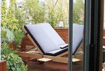 Nuestros clientes disponen ahora de un espacio amplio, ya que el elemento de madera se dispuso en el perímetro de la terraza. Las plantas tamizan y dirigen las vistas y el mueble continuo de madera resuelve las jardineras para crear el fondo vegetal (3), la madera da calidez unificando el suelo y el mueble sofá (4) que alberga un baúl en su interior para esos “grandes” cojines que nos gusta tener en la terraza y no caben en ningún sitio y que se puede convertir en una gran cama exterior desde donde contemplar las estrellas.