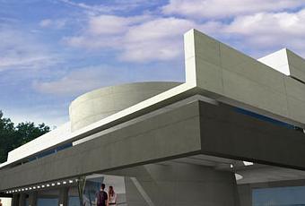 Una de las piezas circulares se abriría en su parte central para dar paso a la entrada principal de la edificación mediante una puerta de generosas dimensiones.