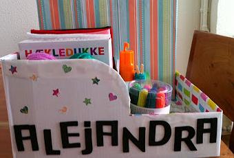 El otro dia estuve haciendo manualidades con mi sobrina y me dijo que el mejor regalo de cumpleaños (su cumple es a final de mes) seria un kit para hacer manualidades. Así que ni corta ni perezosa me puse a ello cortando y forrando una caja de cartón que tenia guardada.