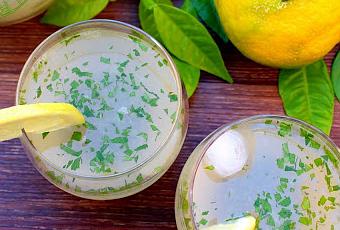 7.- Ponemos una cucharada de hielo picado en el vaso y añadimos la limonada de la nevera....
