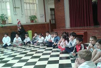 Hoy, frente a un gran auditorio, compuesto por todos nuestros compañeros de otros grados y por todos los docentes, recitamos la poesía que trabajamos con la seño Marisa y Mariana , en horas de biblioteca.