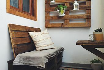 Como los palets los cogí de la basura, el primer paso que di fue limpiarlos y quitarles todo el polvo acumulado. El segundo paso es coger una lija (manual o eléctrica) y dejarlos lo más lisos posible, así te aseguras de no clavarte ninguna astilla y es mucho mejor al tacto. Además si lo refuerzas con clavos, te va a durar mucho más :)El tercer paso es darle un tratamiento para los bichos, carcoma, etc...ya que van a estar en exterior y toda la madera que está en exterior tiene que ser debidamente protegida. Este producto lo puedes conseguir en cualquier ferretería. El cuarto paso es elegir el barniz que te guste y darle a todo, yo elegí en este caso un color roble, a juego con las ventanas de la casa.