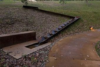 Muros, taludes y rampas... caminos que invitan a ser recorridos, agua que recorre el paisaje y que salta desde lo natural a lo naturalmente artificial, vías que se cruzan, materiales y texturas de aspecto naturalizado con geometrías abstractas, límites entre lo natural y lo modificado por la mano del hombre... un lugar para perderse.