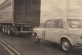 El Fiat 128 de Roberto Carozzo “chupado” detrás de un camión en la