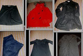 Su explicación: Traté de elegir básicos pero cosas que visto eventualmente. Uso mucha pollera así que elegí una básica negra que depende los accesorios es más formal. Además una camisa negra bien larga que hace la vez de vestido. Con Jeans oscuros es más formas y con calzas más canchera. Además una remerita básica negra pero con el detalle de unos mínimos voladitos en el cuello. Va con todo. A su vez un sweter de color claro, neutro para que el look no sea tan apagado y para dar calidez. Para completar el abrigo quise que sea de color. Para iluminar un poco, porque amo el rojo y quise mostrar que se lo puede combinar con otros colores.