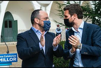 Víctor Honorato, de Eldiario.es, comenta que, falto de cuadros autóctonos para la vigilancia de las mesas del 14-F, el pasado sábado, el PP de Madrid fletó en Atocha un tren del Ave con 420 afiliados con el objetivo de vigilar las mesas catalanas del 14-F. “Convocados por Whatsapp, los integrantes de las diversas agrupaciones madrileñas han ido llegando a Atocha como miembros de una peña futbolística, de las pacíficas, que se organiza para acompañar a la plantilla en los partidos de fuera de casa. La diferencia es que en esos casos se suele fletar un autobús, y no un tren entero. Sin test de COVID-19 durante los minutos de espera —en la sede nacional de Génova 13 sí se hicieron pruebas esta semana—, los que iban llegando recibían un billete y un paquete de desayuno para compensar el madrugón, una vez comprobada su identidad en la lista, y esperaban a la salida festivamente en una estación que, salvo por la presencia de la comitiva, estaba desierta”. El domingo, el PP quedó relegado a una fuerza residual en Catalunya. “La campaña electoral catalana –escribía Miquel Urretabizkaya el pasado sábado– se le ha convertido a Pablo Casado en un vía crucis diario a consecuencia del inicio del juicio al ex tesorero del PP, Luis Bárcenas, y al miedo cerval instalado en el partido ante la posibilidad de que Bárcenas tenga algún tipo de información que termine dando la puntilla a Mariano Rajoy y, en consecuencia, derive en una necesaria limpieza, desinfección y refundación del partido…El pasado volvió a ser presente una y otra vez, y pilló en este caso a los populares sometidos a una presión de tal calibre que en Génova recitaron a diario una oración especial dedicada a San Judas Tadeo, el patrón de las causas perdidas, para que no se produjese el “sorpasso” de Vox que anunciaban los sondeos, y eso le dio a Casado cierto aire para atacar el resto de problemas”.