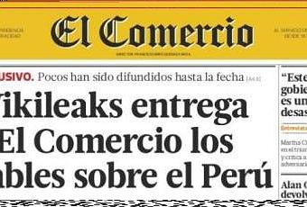En portada el diario peruano El Comercio, el más importante del país, informó que los cables filtrados por WikiLeaks habían sido entregados a ese medio por la empresa Sunshine Press Productions, encargada de las publicaciones de WikiLeaks. La editora central del diario, Rossana Echeandía, contó el encuentro que tuvo con un contacto que le presentó a Kristinn Hrafnsson, director de esa compañía, y también dio detalles de su breve charla con el polémico Julian Assange. Aquí les doy breve extracto: