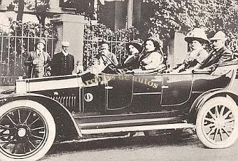El viejo automóvil de la fotografía era un Puch modelo 28/32 HP tipo “D del año 1909 y tenía un motor de cuatro cilindros. Lo curioso de la imagen es que al volante hay una mujer y su copiloto también es una mujer. Si esto fue armado para la foto no lo sé.