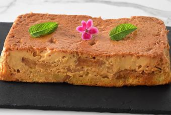 Vierte el flan y deja que se empape bien las capas de magdalenas.