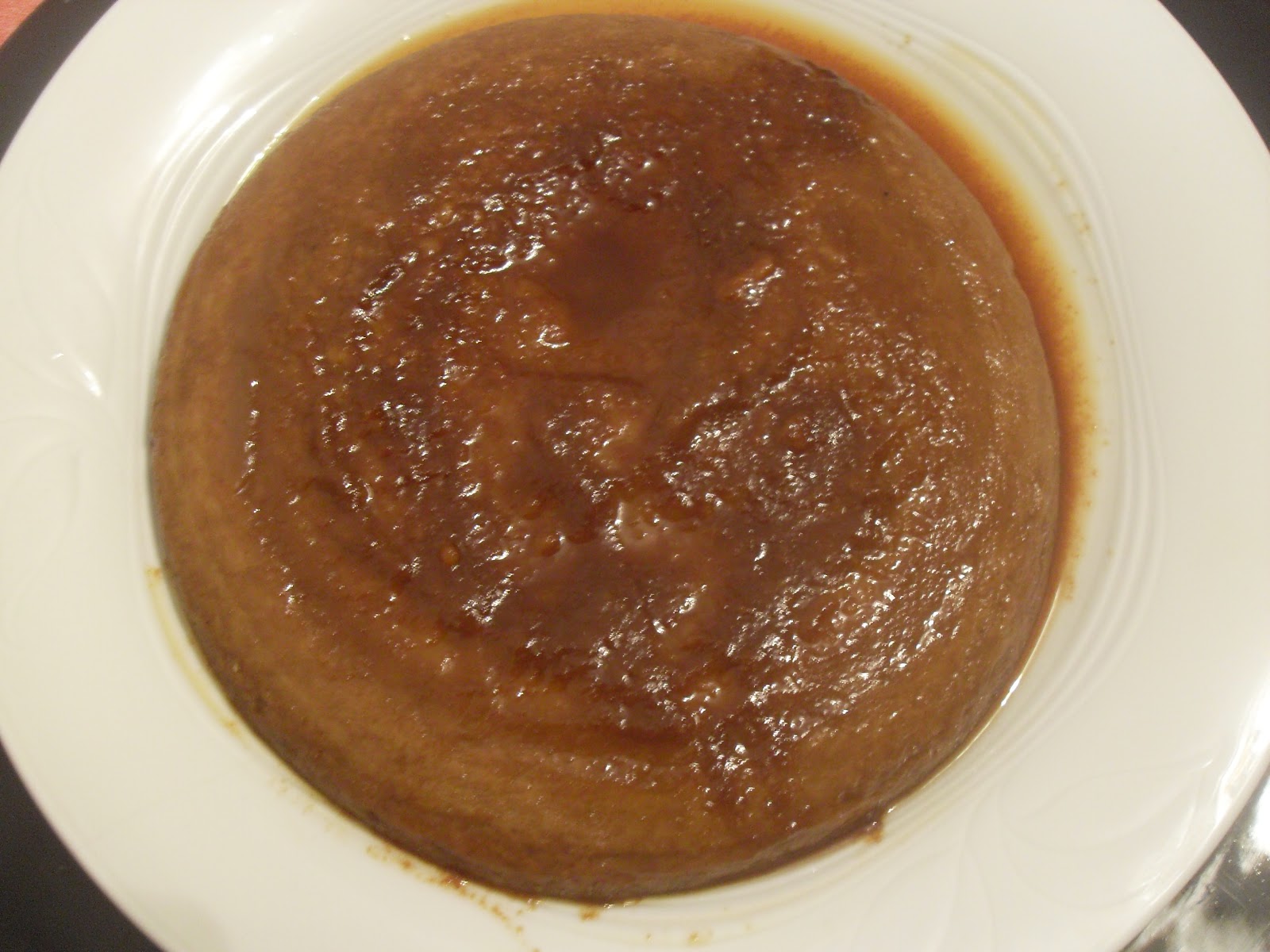 En un molde redondo (el que tengo en casa, vaya) he puesto el caramelo medio minuto. Una vez disuelto con un pincel de cocina lo he pasado por todo el perímetro del molde. He añadido más caramelo (esta vez en el centro) y lo he puesto otros 30 segundos.