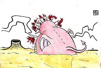 Puede ser algo así como un dragón rosa estornudando sangre mientras toma el fresco en la superficie lunar...