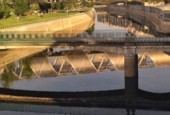 Acabo estos días isidriles con el madrileño puente de La Arganzuela, de Dominique Perrault, sobre el río Manzanares. El puente une los distritos de Carabanchel y Arganzuela. Vale, no es de Calatrava, pero..., mejor. Y vale, el Manzanares no es la ría de Bilbao, ni el hermano pequeño de ésta; o sea, el Támesis, pero tiene dignidad, duintasuna.