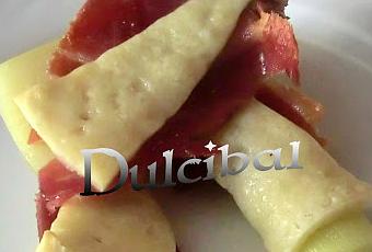 - 4 lonchas de jamón serrano D.O. Teruel- 8 triángulos de queso de oveja añejo Campo Estrella
