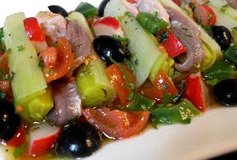 6 anchoas en aceiteVentrescas de atún 4 rabanitos6 tomates cherry6 aceitunas negras sin hueso.Vinagreta:PerejilOréganoSalviaZumo medio limónAceite de oliva virgen extraVinagre de JerezSal y pimienta.