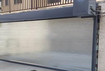 - Puertas enrollables: de la misma manera que una persiana tradicional con guías laterales, se enrolla en un bombo superior. Este sistema nos obliga a reservar un espacio sobre la puerta, de unos 40×40 cm (depende de la altura de la persiana) que condiciona el diámetro del bombo. Con este sistema de apertura podemos tener poco espacio en las inmediaciones de la puerta porque no tiene recorrido. En caso de avería puede ser fácil enrollarla hacia arriba o abrirla manualmente (como una persiana tradicional)