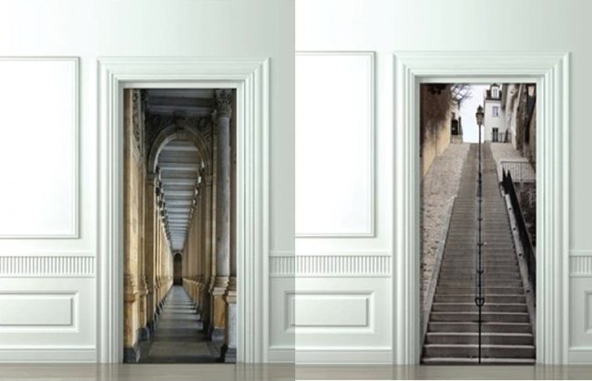 Las ventanas falsas pueden representar un paisaje natural como el que se puede mirar desde una ventana, lo que esa ventana falsa puede llevar a sus observadores a creer que están mirando un paisaje de otro país, según la preferencia de cada uno. Esas láminas tienen un cuidado marco de ventana para hacerlas más real. También las puertas pretenden presentar un espacio que no es real, sirve para simular que los espacios son más grandes.