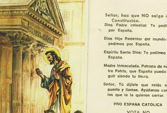 Estampita de Pro España Católica, 1978. Digievolucionaron y ahora se llaman Esquerra y no se duchan.