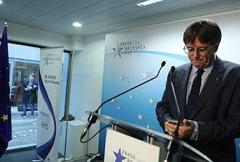 Junts, Carles Puigdemont, comparece en una rueda de prensa en el Parlamento