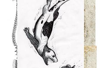 Reconstrucción de Puijila darwini Dibujo realizado por el dibujante oficial de la Taberna del Drunkerosteus: Hodari Nundu. Aquí podréis disfrutar de sus geniales dibujos.P. darwini data del Mioceno Temprano de la Isla de Devon en el norte de Canadá. Presentaba un cuerpo alargado, con un cola larga y, en vez de aletas, unas patas que le permitían el desplazamiento en tierra, es decir, la típica aparencia de nutria. Vivía en el agua dulce, por se puede pensar que los inicios de los pinnípedos se dieron en este medio, y, posteriormente, colonizar los mares.