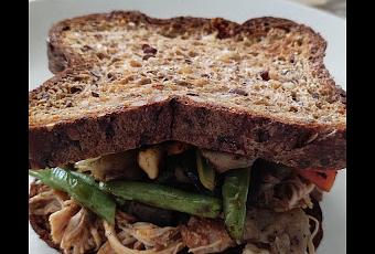 Esta vez lo hemos comido con pan proteico y salteado de verduras campestre.