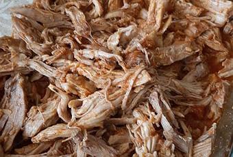 Servir en bollitos de pan, o en un bocadillo con unas patatas fritas , un poco de ensalada de col, aguacate y extra de salsa.