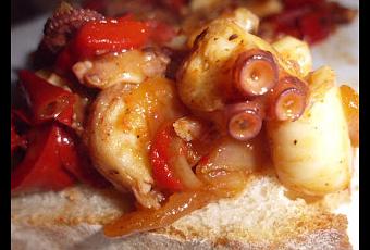 Es muy facil hacer una pulpada, se necesita el pulpo cocido y limpio y un sofrito de cebolla y pimiento. Una hoja de laurel y poco mas. Como habia mucho pulpo, he hecho una parte con mayonesa que siempre nos gusta.