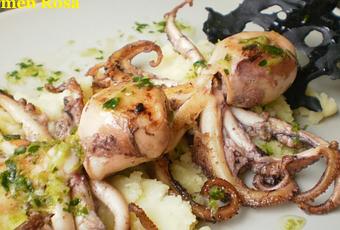 ¿Cómo los hice? Ingredientes para dos personas: Cuatro pulpos medianos (más bien pequeñitos, los compro en el Mercado de Huelin), aceite de oliva virgen extra (uso malagueño, de la alta Axarquia, sin filtrar), dos patatas (malagueñas, hasta con su tierra “colorá” bien pegadita), dos dientes de ajo, una ramita de perejil, un limón (cascarúo…del Valle del Guadalhorce), un sobre de tinta de calamar (la venden en cualquier super, en congelados), dos cucharadas de harina, la clara de un huevo y sal. Los pasos a seguir: Cocer los pulpitos en agua con sal, enteros, durante unos treinta minutos, con un pelin de sal. (No necesitan más tiempo, suelen ser muy tiernos). Cocer las patatas en otra cacerolita, una vez tiernas, escurrirlas y reservarlas caliente. En un cuenco batir la clara de huevo con un pellizco de sal y diluir en ella la harina y la tinta. Precalentar el horno a 180º C. En un papel de hornear, con una cuchara echar la mezcla dándole la forma que gusten y hornear durante unos diez minutos aproximadamente. Sacar y dejar enfriar. En un mortero majar los dientes de ajo con el perejil hasta conseguir que queden bien amalgamados. Añadir un chorreón de aceite de oliva y mezclar bien. Echar el zumo de medio limón, un pelín de sal y reservar. Calentar la plancha ( o si carecen de ella, una sartén les puede servir) engrasándola previamente con aceite de oliva. Cuando esté bien caliente, colocar los pulpitos, dándoles la vuelta de vez en cuando a fin de que queden doraditos por todos lados. Truco: Si se “despega” la cabeza de las patas, al emplatar introducir un palillo de madera de forma que estéticamente no quede mal, las patas por un lado y la cabecita por otro. Mientras machacar las patatas con un pelín de sal. Presentación: Poner el puré de patatas sobre el plato, los pulpitos encima, en un lado el crujiente de tinta y echar la salsa por encima tanto de los pulpos como por las patatas machacadas. ¡¡ No olviden: Regar con un buen vino malagueño y sigan ése consejo de mis hijos, un delicioso, bien frio, afrutado moscatel seco !! Sabor a Málaga, siempre en Mi cocina…..