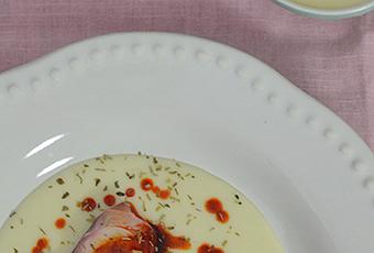 Para montar el plato, colocamos una base de crema de patata, unas rodajas de pulpo repartidas por encima y rematarlo con el aceite de pimentón.