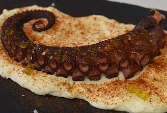 Si os gusta el pulpo, estoy segura de que os va a gustar!!Yo aprovecho y cuando el pulpo se ve en la pescadería bien chulo y grande de dos a tres kilos lo compro y lo congelo y el día que me apetece lo saco, lo dejo descongelar y lo cuezo, también lo venden ya cocido pero a mi me gusta cocerlo en casa, tampoco se tarda tanto y te ahorras unos euros.Si queréis cocer el pulpo en casa o preparar un pulpo a la gallega Aquí tienes la recetaLuego preparamos una parmentier de patata para acompañarlo y solo queda disfrutar de este plato.Espero que lo disfrutéis!!Vamos con la receta.Ingredientes:Dos patas de pulpo Dos patatas con piel40 gramos de Mantequilla a temperatura ambiente100 mililitros de Leche semi desnatada40 gramos de queso curado Sal y PimientaAceite de oliva virgenPerlas de aceite de olivaPimentón de la veraEscamas de salPreparación:Ponemos una olla con agua, cuando eche a hervir, metemos dos patatas bien lavadas.