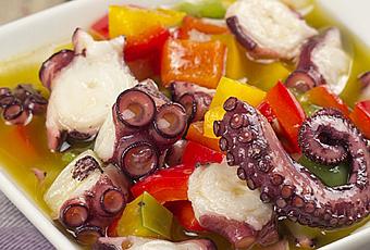 - Cuando el pulpo esté cocido lo troceamos y lo mezclamos con la vinagreta.
