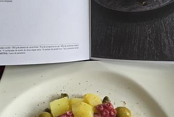 A continuación te doy un adelanto del libro, con esta receta de «Timbal de Pulpo y Patatas con Aceitunas y Alcaparras»