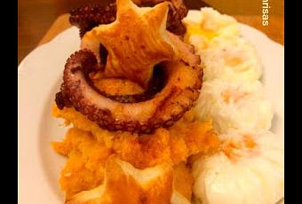 - Servimos todo junto. El pulpo espolvoréalo de sal y pimentón.