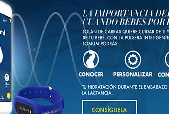 La pulsera y la app Somum son un producto lanzado al mercado por la conocida marca de agua Solán de Cabras, fruto de la preocupación de que las futuras mamás se hidraten correctamente satisfaciendo las necesidades de agua del organismo debido a los cambios fisiológicos que trae la gestación. Se recomienda que durante el embarazo se tomen como mínimo unos dos litros de líquidos al día, aunque esta cantidad puede variar según el peso, la edad, la altura y la región en la que se vive. Aunque hablamos de líquidos, lo más recomendable es el agua mineral con bajo contenido en sodio.