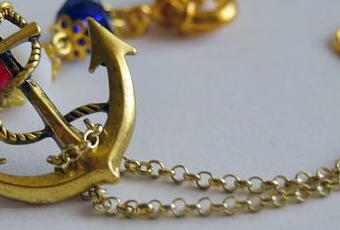 Bonita pulsera con aire vintage. Está realizada con cadenas, ancla dorada y cristal checo facetado en tres colores.