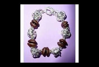 -Se mide el grosor de la muñeca, dejando unos 10 cm. adicionales. -Se corta un hilo o fibra del tamaño medido. -A una de las puntas se amarra una arandela. -Se engarzan de 20 a 25 granos de café previamente perforados, limpios y pulidos. -Para finalizar, se amarra un broche en el extremo opuesto del hilo y se corta el sobrante.