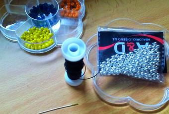Con hilo elástico, cuentas de colores y cuentas plateadas se me ha ocurrido hacerme unas pulseras que llevan mensajes escritos en morse. Cada una con un color que también tiene un significado. Quedan muy resultonas y alegres y el coste es mínimo.