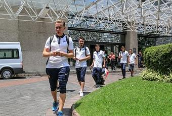 Luego de un semestre en el que no pudo colocarse con ningún equipo de Primera División, el delantero ecuatoriano fue el protagonista en esta concentración. Entró al hotel con una cara seria y se fue directo al comedor, en donde estuvo el plantel poco menos de una hora.