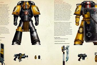 En la segunda imagen se ven mas claramente los nombres de dos unidades(Templar Brethren y Phalanx Warder Squad),dos personajes especiales(Sigismund,que mas tarde fundaría los Templarios Negros y Alexis Polux,que mas tarde fundaría a los Puños Carmesíes) y como no,el Primarca de los Puños Imperiales,Rogal Dorn.Todos ellos tendrán secciones propias(Ahí se ven las paginas del libro en la que salen) y reglas(Figuras posiblemente también.Dorn y Sigismund fijo).Lastima que se vean tan mal,pero igual en breves se pueden conseguir unas mas claras.